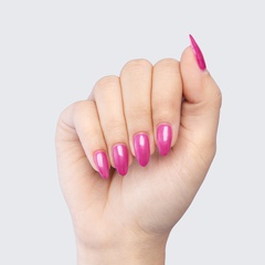Magenta. Pearl finish. Medium-light. 1 coat sheer, 2+ coats opaque. Warm undertone.